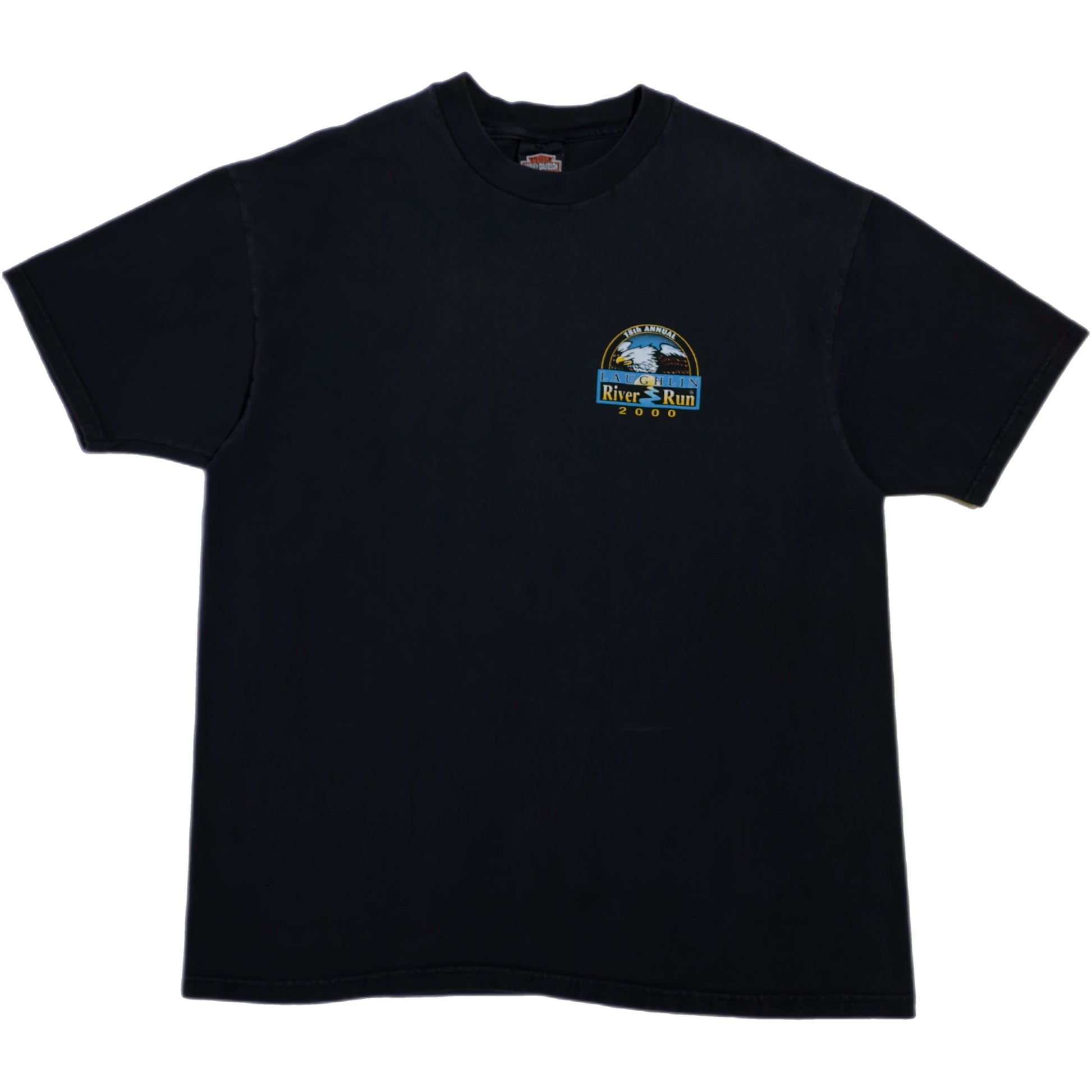 Description: 2000 Harley Davidson 18th Annual Laughlin River Run Short Sleeve T-Shirt w/ Left Front & Back Print