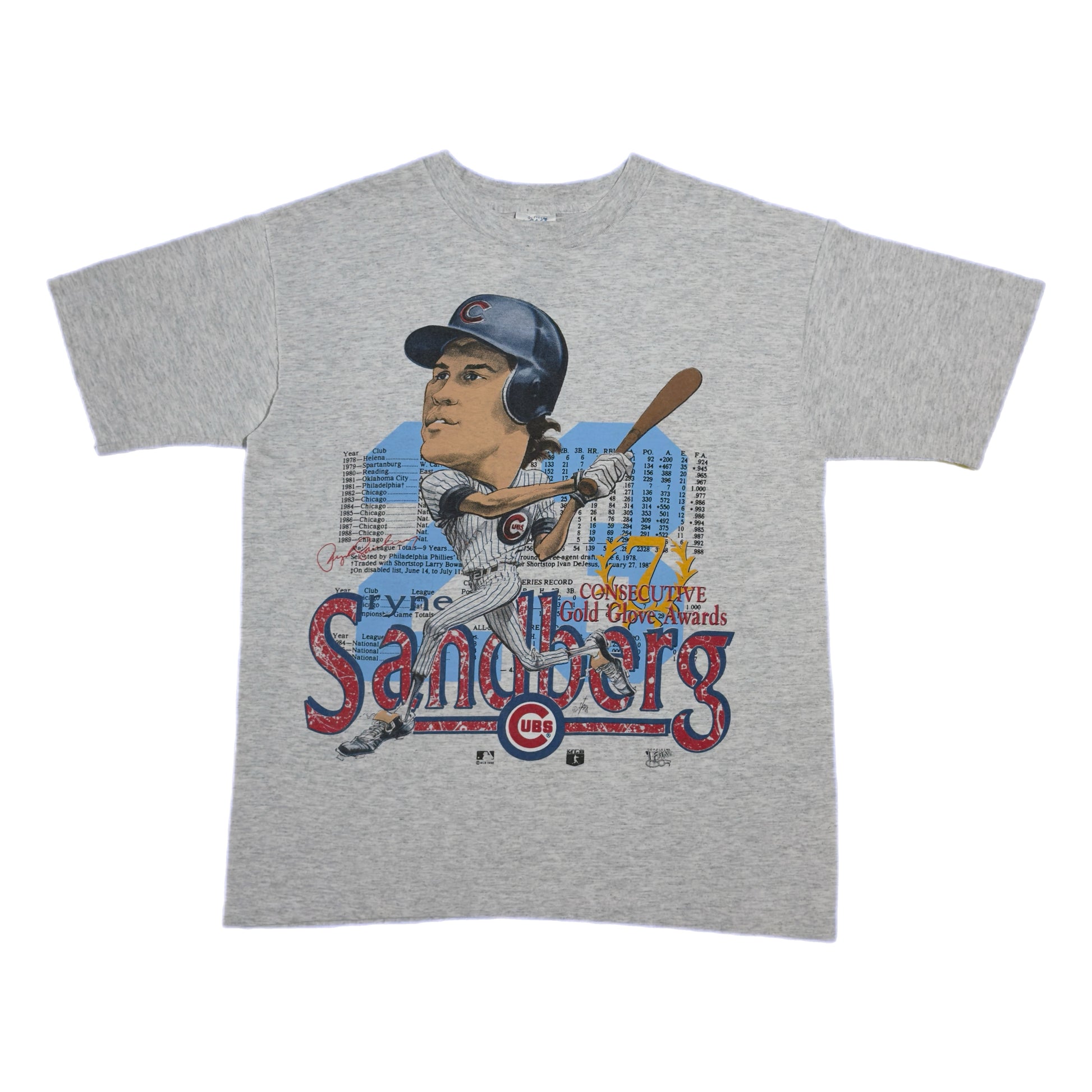 Description: 1992 MLB Chicago Cubs Ryne Sandberg Short Sleeve T-Shirt w/ Front Print