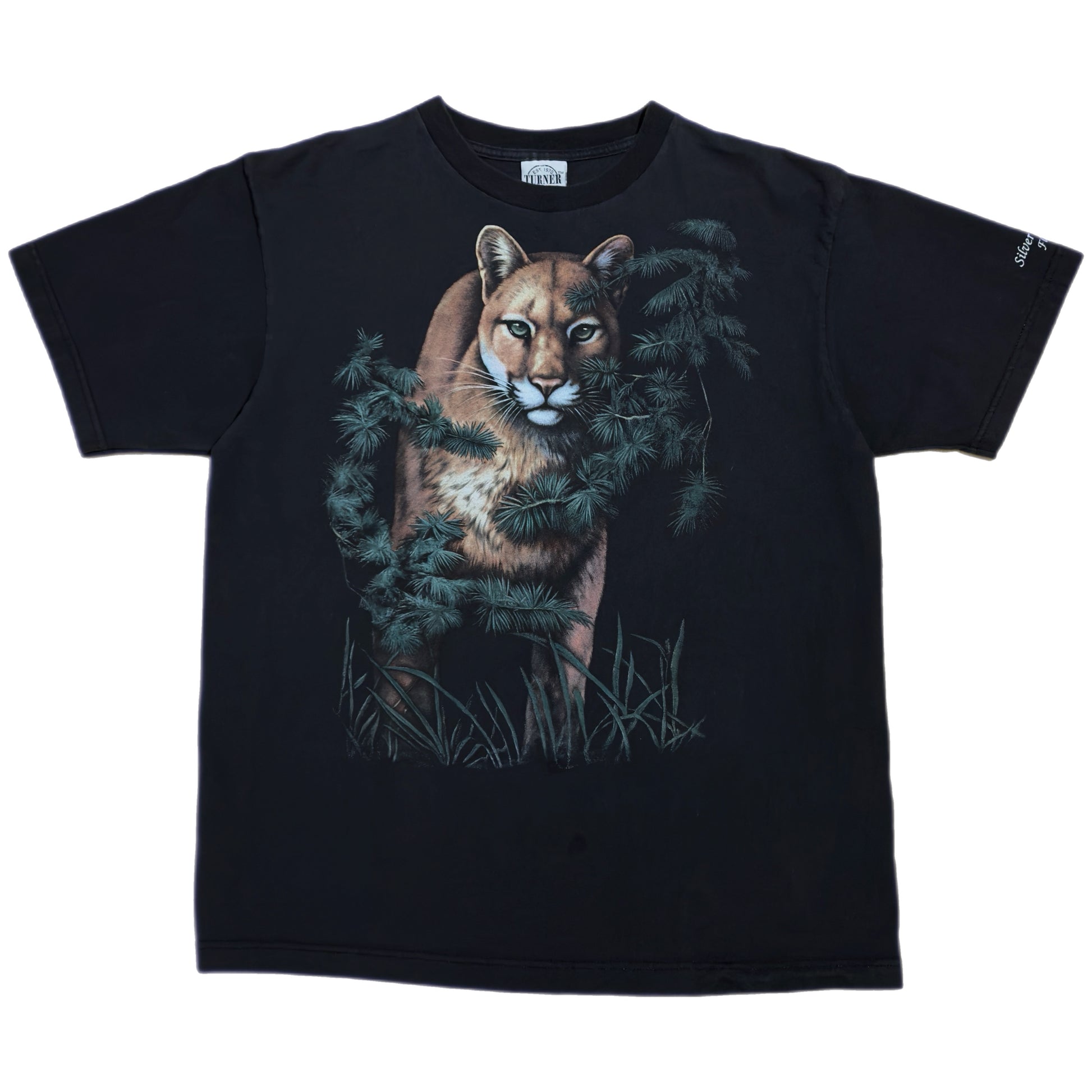 Description: 1990’s Nature Cougar Short Sleeve T-Shirt w/ Front & Left Sleeve Print